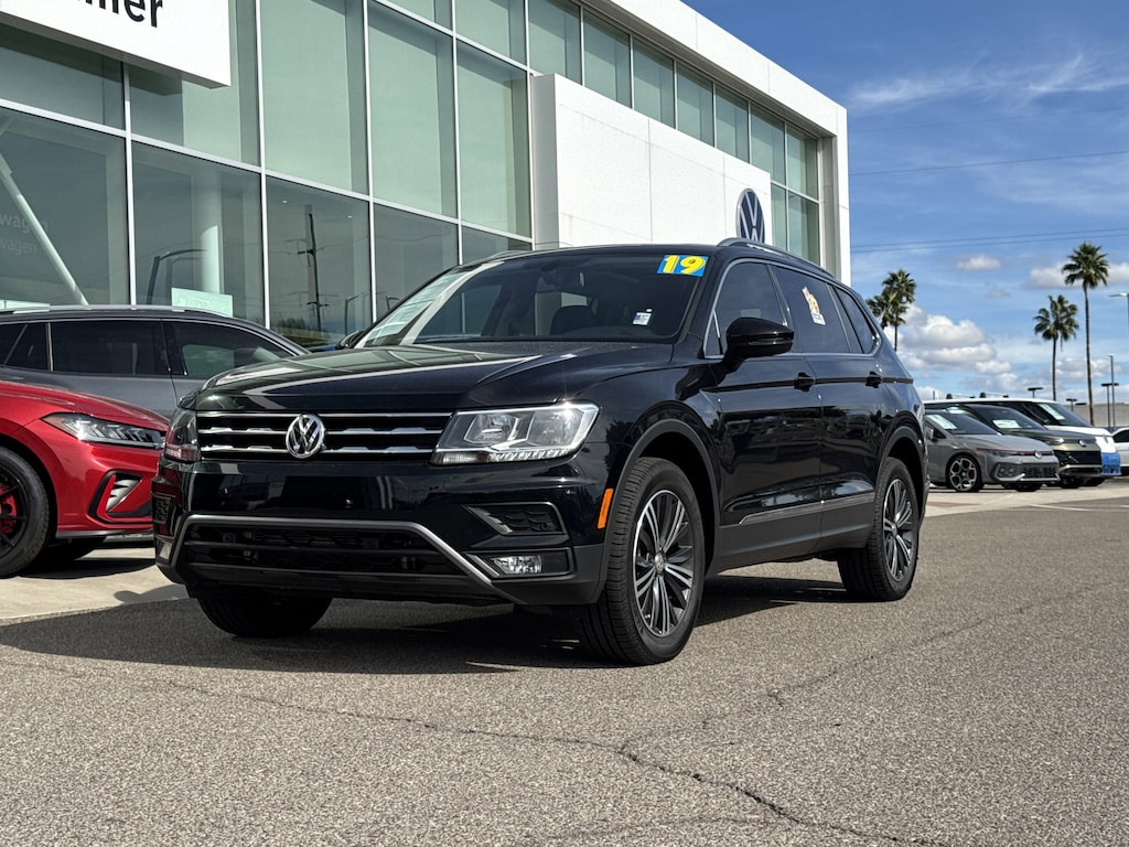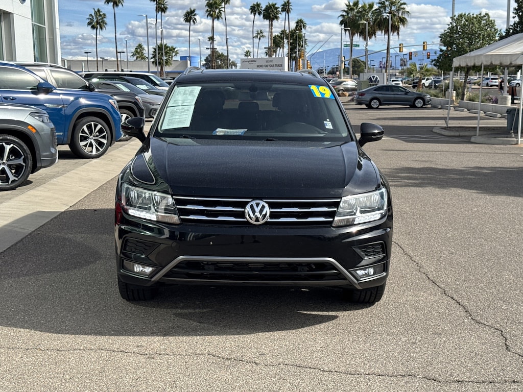 This 2019 Deep Black Pearl Volkswagen Tiguan 2.0T SEL AWD is well equipped and includes these features and benefits: Volkswagen Certified Pre-Owned Certified, AWD, 3.33 Axle Ratio, 4-Wheel Disc Brakes, 4-Wheel Independent Suspension, 6 Speakers, ABS brakes, Air Conditioning, Alloy wheels, AM/FM radio: SiriusXM, Automatic temperature control, Brake assist, Bumpers: body-color, Compass, Delay-off headlights, Driver door bin, Driver vanity mirror, Dual front impact airbags, Dual front side impact airbags, Electronic Stability Control, Emergency communication system: VW Car-Net services (capabilities require enrollment or subscription), Exterior Parking Camera Rear, Forward collision: FCW w/Autonomous Emergency Braking mitigation, Four wheel independent suspension, Front anti-roll bar, Front Bucket Seats, Front Center Armrest, Front dual zone A/C, Front fog lights, Front reading lights, Fully automatic headlights, Heated door mirrors, Heated Front Comfort Seats, Heated front seats, Illuminated entry, Leather Shift Knob, Low tire pressure warning, Navigation System, Occupant sensing airbag, Outside temperature display, Overhead airbag, Overhead console, Panic alarm, Passenger door bin, Passenger vanity mirror, Perforated V-Tex Leatherette Seating Surfaces, Power door mirrors, Power driver seat, Power Liftgate, Power moonroof, Power steering, Power windows, Radio data system, Radio: Discover Media AM/FM/HD, Rear anti-roll bar, Rear reading lights, Rear seat center armrest, Rear window defroster, Rear window wiper, Remote CD player, Remote keyless entry, Roof rack: rails only, Security system, Speed control, Speed-sensing steering, Split folding rear seat, Spoiler, Steering wheel mounted audio controls, Tachometer, Telescoping steering wheel, Tilt steering wheel, Traction control, Trip computer, Turn signal indicator mirrors, Variably intermittent wipers, and Wheels: 18 Thin Multi-Spoke 2-Tone Alloy. Volkswagen Certified Pre-Owned Certified, AWD, 3.33 Axle Ratio, 4-Wheel Disc Brakes, 4-Wheel Independent Suspension, 6 Speakers, ABS brakes, Air Conditioning, Alloy wheels, AM/FM radio: SiriusXM, Automatic temperature control, Brake assist, Bumpers: body-color, Compass, Delay-off headlights, Driver door bin, Driver vanity mirror, Dual front impact airbags, Dual front side impact airbags, Electronic Stability Control, Emergency communication system: VW Car-Net services (capabilities require enrollment or subscription), Exterior Parking Camera Rear, Forward collision: FCW w/Autonomous Emergency Braking mitigation, Four wheel independent suspension, Front anti-roll bar, Front Bucket Seats, Front Center Armrest, Front dual zone A/C, Front fog lights, Front reading lights, Fully automatic headlights, Heated door mirrors, Heated Front Comfort Seats, Heated front seats, Illuminated entry, Leather Shift Knob, Low tire pressure warning, Navigation System, Occupant sensing airbag, Outside temperature display, Overhead airbag, Overhead console, Panic alarm, Passenger door bin, Passenger vanity mirror, Perforated V-Tex Leatherette Seating Surfaces, Power door mirrors, Power driver seat, Power Liftgate, Power moonroof, Power steering, Power windows, Radio data system, Radio: Discover Media AM/FM/HD, Rear anti-roll bar, Rear reading lights, Rear seat center armrest, Rear window defroster, Rear window wiper, Remote CD player, Remote keyless entry, Roof rack: rails only, Security system, Speed control, Speed-sensing steering, Split folding rear seat, Spoiler, Steering wheel mounted audio controls, Tachometer, Telescoping steering wheel, Tilt steering wheel, Traction control, Trip computer, Turn signal indicator mirrors, Variably intermittent wipers, Wheels: 18 Thin Multi-Spoke 2-Tone Alloy, AWD. Certified. Clean CARFAX.
