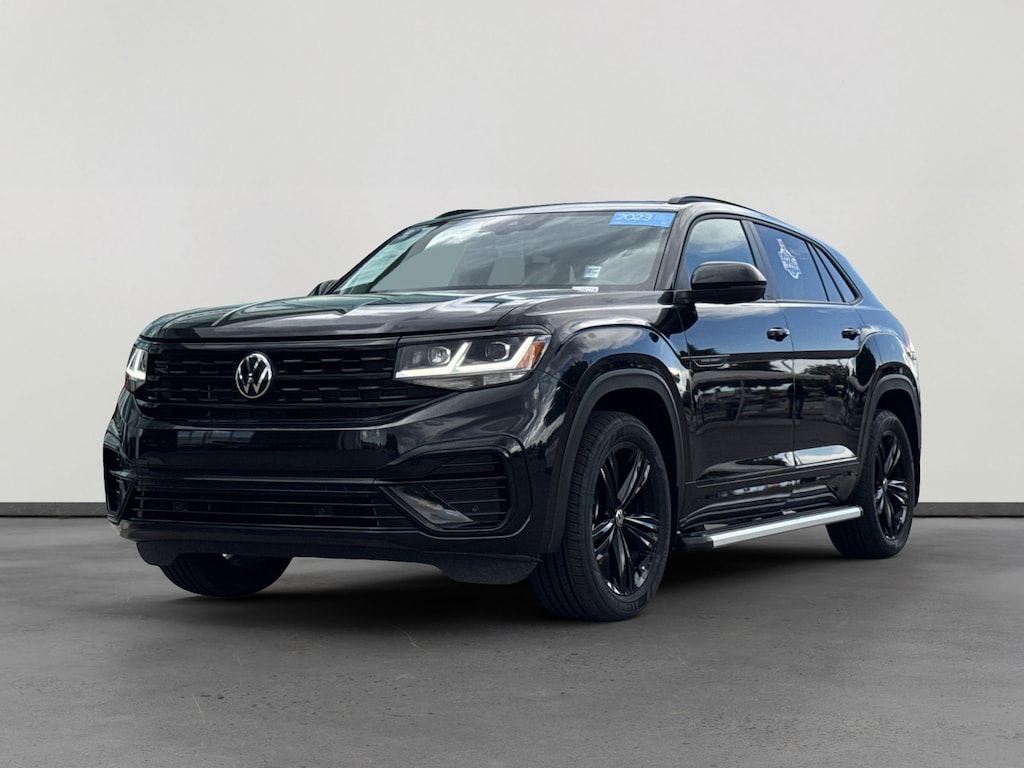 This 2023 Deep Black Pearl Volkswagen Atlas Cross Sport 2.0T SEL R-Line AWD is well equipped and includes these features and benefits: Volkswagen Certified Pre-Owned Certified, 3.60 Axle Ratio, 4-Wheel Disc Brakes, 6 Speakers, ABS brakes, Air Conditioning, Alloy wheels, AM/FM radio: SiriusXM with 360L, Auto High-beam Headlights, Auto-dimming Rear-View mirror, Automatic temperature control, Brake assist, Bumpers: body-color, Compass, Delay-off headlights, Driver door bin, Driver vanity mirror, Dual front impact airbags, Dual front side impact airbags, Electronic Stability Control, Emergency communication system: VW Car-Net Safe & Secure 5-year, Exterior Parking Camera Rear, Four wheel independent suspension, Front anti-roll bar, Front Bucket Seats, Front Center Armrest, Front dual zone A/C, Front fog lights, Front reading lights, Fully automatic headlights, Heated Comfort Front Bucket Seats, Heated door mirrors, Heated front seats, Heated steering wheel, Illuminated entry, Leather Shift Knob, Low tire pressure warning, Memory seat, Navigation System, Occupant sensing airbag, Outside temperature display, Overhead airbag, Overhead console, Panic alarm, Passenger door bin, Passenger vanity mirror, Perforated V-Tex Leatherette Seating Surfaces, Power door mirrors, Power driver seat, Power Liftgate, Power moonroof: Panoramic, Power passenger seat, Power steering, Power windows, Radio data system, Radio: MIB3 Discover Media w/8 Touchscreen Navigation, Rain sensing wipers, Rear anti-roll bar, Rear reading lights, Rear seat center armrest, Rear window defroster, Rear window wiper, Remote keyless entry, Security system, Speed control, Speed-sensing steering, Split folding rear seat, Spoiler, Sport steering wheel, Standard Suspension, Steering wheel mounted audio controls, Tachometer, Telescoping steering wheel, Tilt steering wheel, Traction control, Trip computer, Turn signal indicator mirrors, Variably intermittent wipers, and Wheels: 20 x 8J 5-Spoke Black Painted Alloy. Volkswagen Certified Pre-Owned Certified, 3.60 Axle Ratio, 4-Wheel Disc Brakes, 6 Speakers, ABS brakes, Air Conditioning, Alloy wheels, AM/FM radio: SiriusXM with 360L, Auto High-beam Headlights, Auto-dimming Rear-View mirror, Automatic temperature control, Brake assist, Bumpers: body-color, Compass, Delay-off headlights, Driver door bin, Driver vanity mirror, Dual front impact airbags, Dual front side impact airbags, Electronic Stability Control, Emergency communication system: VW Car-Net Safe & Secure 5-year, Exterior Parking Camera Rear, Four wheel independent suspension, Front anti-roll bar, Front Bucket Seats, Front Center Armrest, Front dual zone A/C, Front fog lights, Front reading lights, Fully automatic headlights, Heated Comfort Front Bucket Seats, Heated door mirrors, Heated front seats, Heated steering wheel, Illuminated entry, Leather Shift Knob, Low tire pressure warning, Memory seat, Navigation System, Occupant sensing airbag, Outside temperature display, Overhead airbag, Overhead console, Panic alarm, Passenger door bin, Passenger vanity mirror, Perforated V-Tex Leatherette Seating Surfaces, Power door mirrors, Power driver seat, Power Liftgate, Power moonroof: Panoramic, Power passenger seat, Power steering, Power windows, Radio data system, Radio: MIB3 Discover Media w/8 Touchscreen Navigation, Rain sensing wipers, Rear anti-roll bar, Rear reading lights, Rear seat center armrest, Rear window defroster, Rear window wiper, Remote keyless entry, Security system, Speed control, Speed-sensing steering, Split folding rear seat, Spoiler, Sport steering wheel, Standard Suspension, Steering wheel mounted audio controls, Tachometer, Telescoping steering wheel, Tilt steering wheel, Traction control, Trip computer, Turn signal indicator mirrors, Variably intermittent wipers, Wheels: 20 x 8J 5-Spoke Black Painted Alloy. Certified. CARFAX One-Owner.
