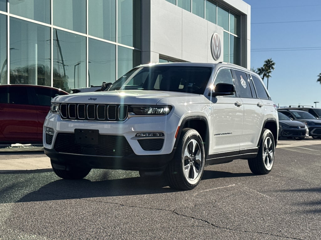 This 2024 Bright White Clearcoat Jeep Grand Cherokee 4xe Base 4WD is well equipped and includes these features and benefits: Quick Order Package 27F, 2.0L I4 DOHC, 4WD, 10 Speakers, 3.70 Rear Axle Ratio, 4-Wheel Disc Brakes, ABS brakes, Air Conditioning, Alloy wheels, AM/FM radio: SiriusXM with 360L, Anti-whiplash front head restraints, Audio memory, Auto High-beam Headlights, Automatic temperature control, Brake assist, Bumpers: body-color, Capri Leatherette Seats, Compass, Delay-off headlights, Driver door bin, Driver vanity mirror, Dual front impact airbags, Dual front side impact airbags, Electronic Stability Control, Four wheel independent suspension, Front anti-roll bar, Front Bucket Seats, Front Center Armrest w/Storage, Front dual zone A/C, Front fog lights, Front License Plate Bracket, Front reading lights, Fully automatic headlights, Garage door transmitter, Heated door mirrors, Heated front seats, Heated rear seats, Heated steering wheel, Heavy Duty Suspension, Illuminated entry, Knee airbag, Low tire pressure warning, Memory seat, Navigation System, Occupant sensing airbag, Outside temperature display, Overhead airbag, Overhead console, Panic alarm, ParkView Rear Back-Up Camera, Passenger door bin, Passenger vanity mirror, Power door mirrors, Power driver seat, Power Liftgate, Power moonroof, Power passenger seat, Power steering, Power windows, Radio data system, Radio: Uconnect 5 Nav w/10.1 Display, Rear anti-roll bar, Rear reading lights, Rear window defroster, Rear window wiper, Remote keyless entry, Security system, Speed control, Speed-Sensitive Wipers, Split folding rear seat, Spoiler, Steering wheel mounted audio controls, Tachometer, Telescoping steering wheel, Tilt steering wheel, Traction control, Trip computer, Turn signal indicator mirrors, Variably intermittent wipers, Voltmeter, and Wheels: 18 x 8 Fully Painted Aluminum. 2.0L I4 DOHC, 4WD, 10 Speakers, 3.70 Rear Axle Ratio, 4-Wheel Disc Brakes, ABS brakes, Air Conditioning, Alloy wheels, AM/FM radio: SiriusXM with 360L, Anti-whiplash front head restraints, Audio memory, Auto High-beam Headlights, Automatic temperature control, Brake assist, Bumpers: body-color, Capri Leatherette Seats, Compass, Delay-off headlights, Driver door bin, Driver vanity mirror, Dual front impact airbags, Dual front side impact airbags, Electronic Stability Control, Four wheel independent suspension, Front anti-roll bar, Front Bucket Seats, Front Center Armrest w/Storage, Front dual zone A/C, Front fog lights, Front License Plate Bracket, Front reading lights, Fully automatic headlights, Garage door transmitter, Heated door mirrors, Heated front seats, Heated rear seats, Heated steering wheel, Heavy Duty Suspension, Illuminated entry, Knee airbag, Low tire pressure warning, Memory seat, Navigation System, Occupant sensing airbag, Outside temperature display, Overhead airbag, Overhead console, Panic alarm, ParkView Rear Back-Up Camera, Passenger door bin, Passenger vanity mirror, Power door mirrors, Power driver seat, Power Liftgate, Power moonroof, Power passenger seat, Power steering, Power windows, Quick Order Package 27F, Radio data system, Radio: Uconnect 5 Nav w/10.1 Display, Rear anti-roll bar, Rear reading lights, Rear window defroster, Rear window wiper, Remote keyless entry, Security system, Speed control, Speed-Sensitive Wipers, Split folding rear seat, Spoiler, Steering wheel mounted audio controls, Tachometer, Telescoping steering wheel, Tilt steering wheel, Traction control, Trip computer, Turn signal indicator mirrors, Variably intermittent wipers, Voltmeter, Wheels: 18 x 8 Fully Painted Aluminum, 2.0L I4 DOHC, 4WD. CARFAX One-Owner.