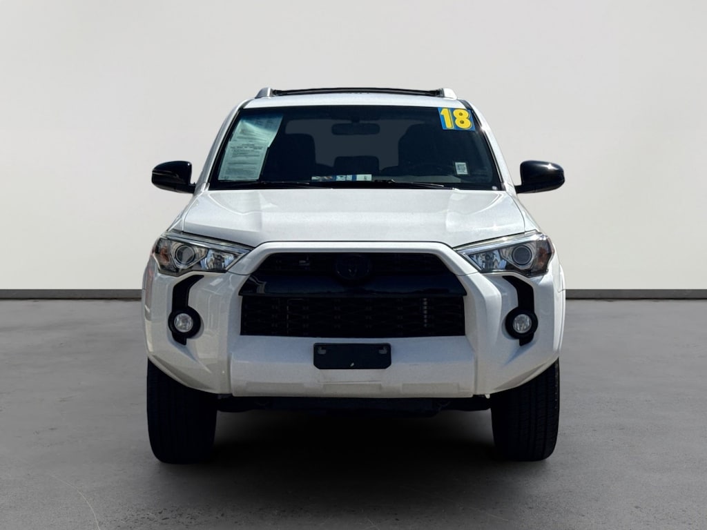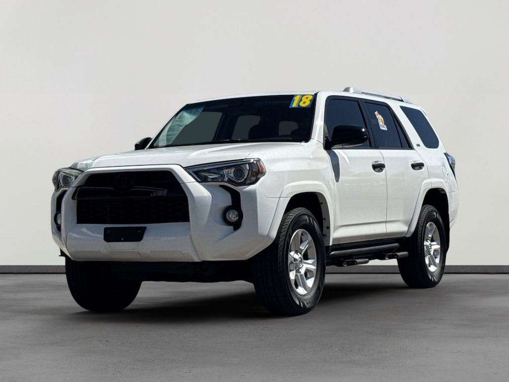 This 2018 Super White Toyota 4Runner SR5 4WD is well equipped and includes these features and benefits: 4WD, Black Graphite Cloth, 17 x 7.0 6-Spoke Alloy Wheels, 3.727 Axle Ratio, 4-Wheel Disc Brakes, 8 Speakers, ABS brakes, Air Conditioning, Alloy wheels, AM/FM radio: SiriusXM, Anti-whiplash front head restraints, Brake assist, Bumpers: body-color, CD player, Driver door bin, Driver vanity mirror, Dual front impact airbags, Dual front side impact airbags, Electronic Stability Control, Emergency communication system: Safety Connect, Exterior Parking Camera Rear, Front anti-roll bar, Front Bucket Seats, Front Center Armrest, Front fog lights, Front reading lights, Front wheel independent suspension, Heated door mirrors, Illuminated entry, Knee airbag, Leather Shift Knob, Leather steering wheel, Low Fabric Seat Trim, Low tire pressure warning, Occupant sensing airbag, Outside temperature display, Overhead airbag, Overhead console, Panic alarm, Passenger door bin, Passenger vanity mirror, Power door mirrors, Power driver seat, Power steering, Power windows, Radio: Entune Audio Plus, Rear anti-roll bar, Rear seat center armrest, Rear window defroster, Rear window wiper, Remote keyless entry, Roof rack: rails only, Security system, Speed control, Speed-sensing steering, Split folding rear seat, Spoiler, Steering wheel mounted audio controls, Tachometer, Telescoping steering wheel, Tilt steering wheel, Traction control, Trip computer, and Variably intermittent wipers. 4WD, Black Graphite Cloth, 17 x 7.0 6-Spoke Alloy Wheels, 3.727 Axle Ratio, 4-Wheel Disc Brakes, 8 Speakers, ABS brakes, Air Conditioning, Alloy wheels, AM/FM radio: SiriusXM, Anti-whiplash front head restraints, Brake assist, Bumpers: body-color, CD player, Driver door bin, Driver vanity mirror, Dual front impact airbags, Dual front side impact airbags, Electronic Stability Control, Emergency communication system: Safety Connect, Exterior Parking Camera Rear, Front anti-roll bar, Front Bucket Seats, Front Center Armrest, Front fog lights, Front reading lights, Front wheel independent suspension, Heated door mirrors, Illuminated entry, Knee airbag, Leather Shift Knob, Leather steering wheel, Low Fabric Seat Trim, Low tire pressure warning, Occupant sensing airbag, Outside temperature display, Overhead airbag, Overhead console, Panic alarm, Passenger door bin, Passenger vanity mirror, Power door mirrors, Power driver seat, Power steering, Power windows, Radio: Entune Audio Plus, Rear anti-roll bar, Rear seat center armrest, Rear window defroster, Rear window wiper, Remote keyless entry, Roof rack: rails only, Security system, Speed control, Speed-sensing steering, Split folding rear seat, Spoiler, Steering wheel mounted audio controls, Tachometer, Telescoping steering wheel, Tilt steering wheel, Traction control, Trip computer, Variably intermittent wipers, 4WD, Black Graphite Cloth.